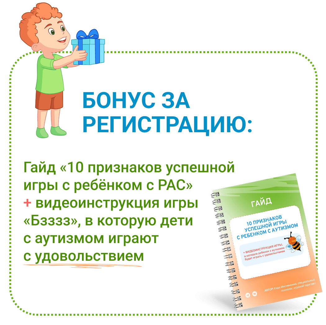 гайд «10 признаков успешной игры с ребёнком с РАС» + видеоинструкция игры «Бзззз»