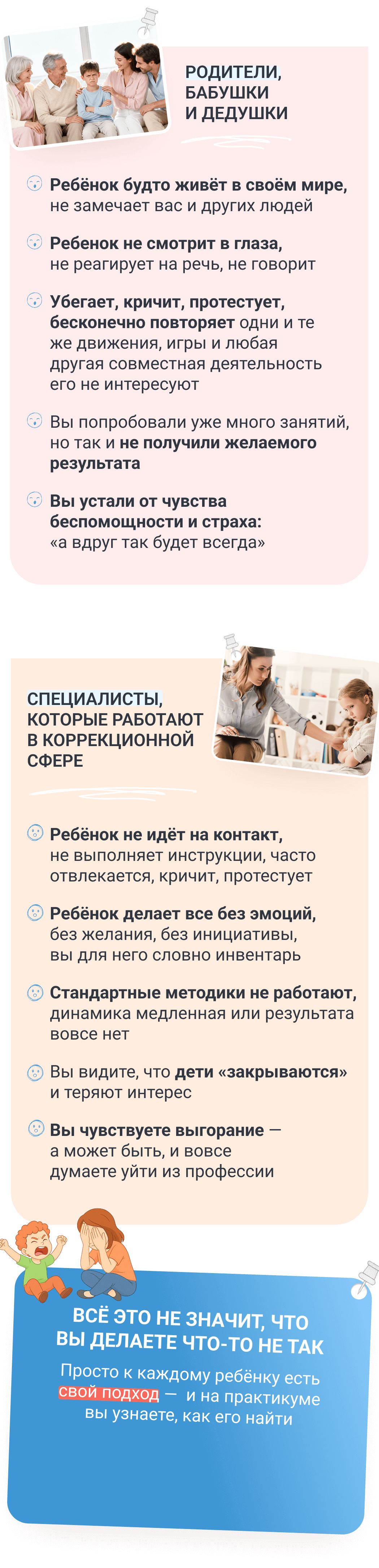 Сделайте первый шаг к тому, чтобы ребёнку с аутизмом захотелось общаться с вами и другими людьми — регистрируйтесь на практикум прямо сейчас