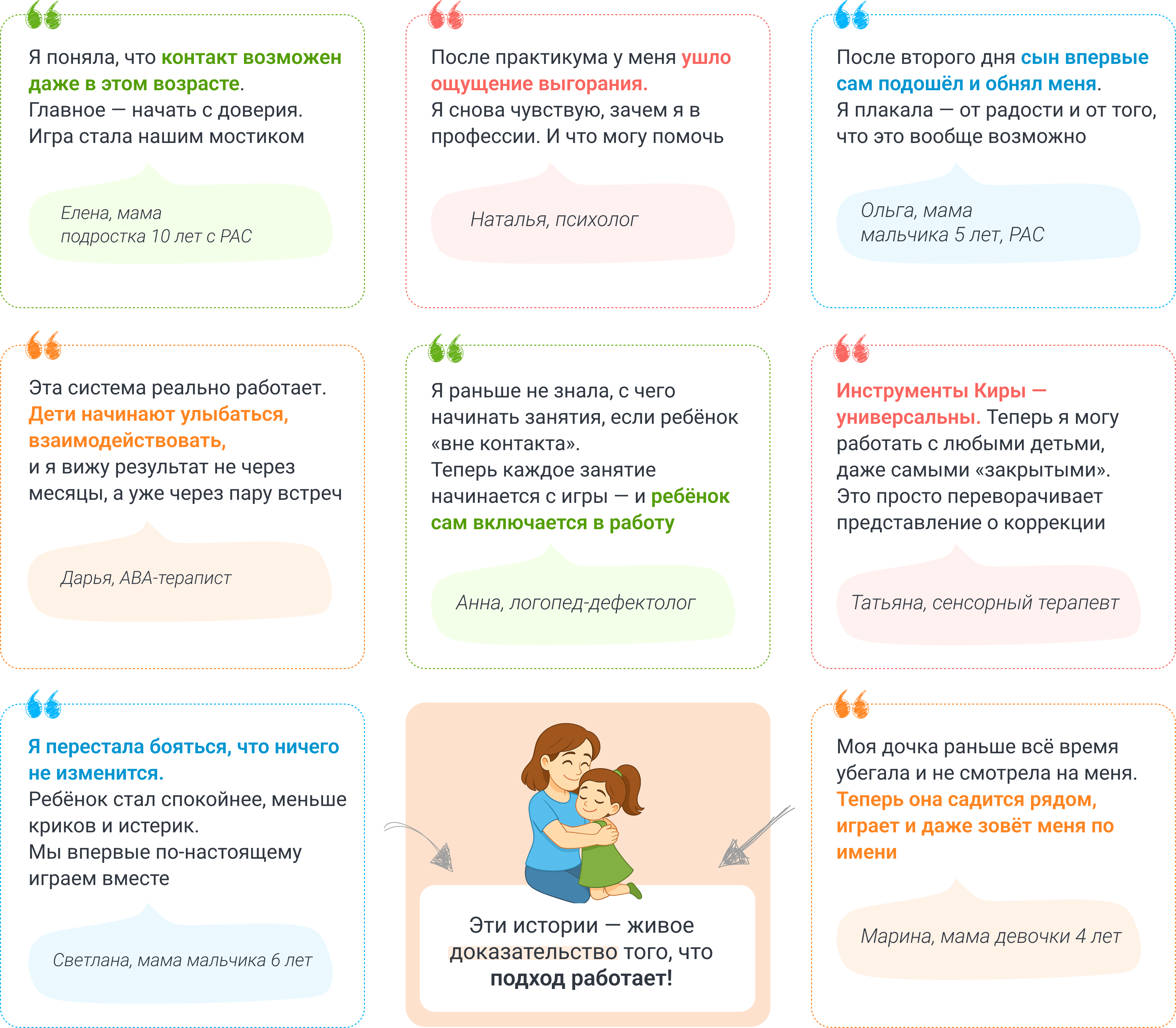 Сможете быстро установить контакт даже с самым «сложным» ребенком, который не смотрит в глаза, не откликается на имя, прячется за родителя и отказывается заходить в кабинет